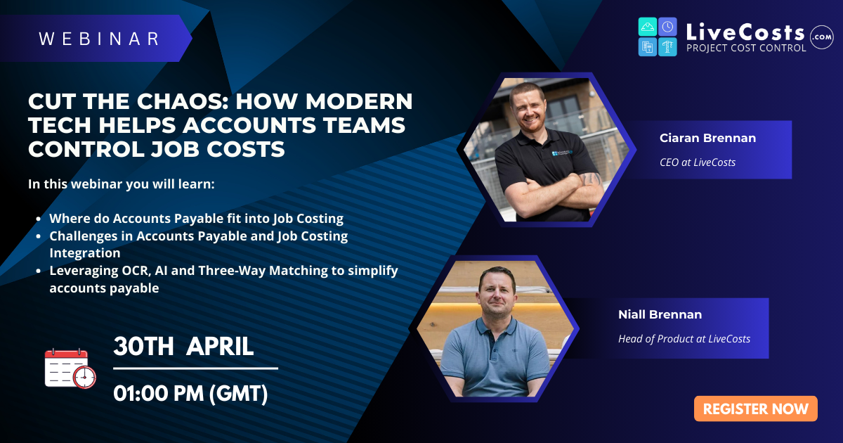 Join Ciaran Brennan and a Niall Brennan as they explore how today’s leading-edge technology is transforming the way accounts teams manage job costs. In this essential session, discover practical strategies to streamline workflows, improve cost tracking accuracy, and eliminate the chaos that often surrounds project finances. Learn how automation, real-time data, and intuitive tools are empowering financial teams to take control of budgets, enhance collaboration, and deliver more profitable projects. Don’t miss this opportunity to gain actionable insights and future-proof your cost control processes with the power of modern job costing.